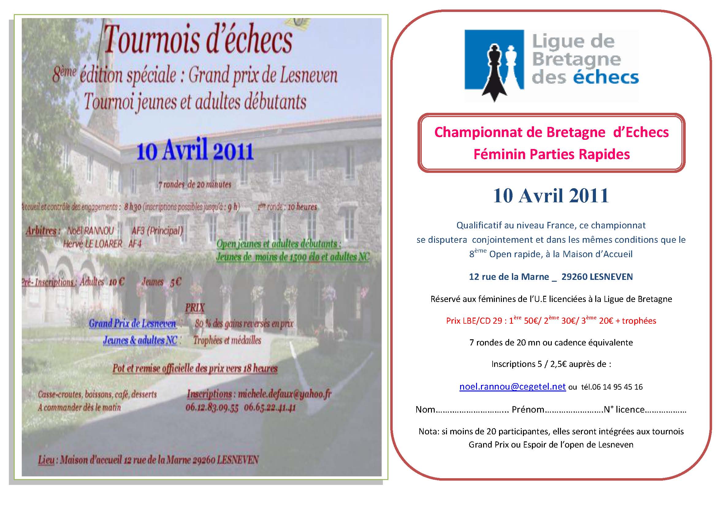 L’inscription est gratuite pour tous, mais pour pouvoir organiser au mieux cette rencontre, la fiche d’inscription doit être obligatoirement renvoyée par mail avant le mercredi 18 mai 2011, 18h. Aucune inscription ne sera possible sur place.