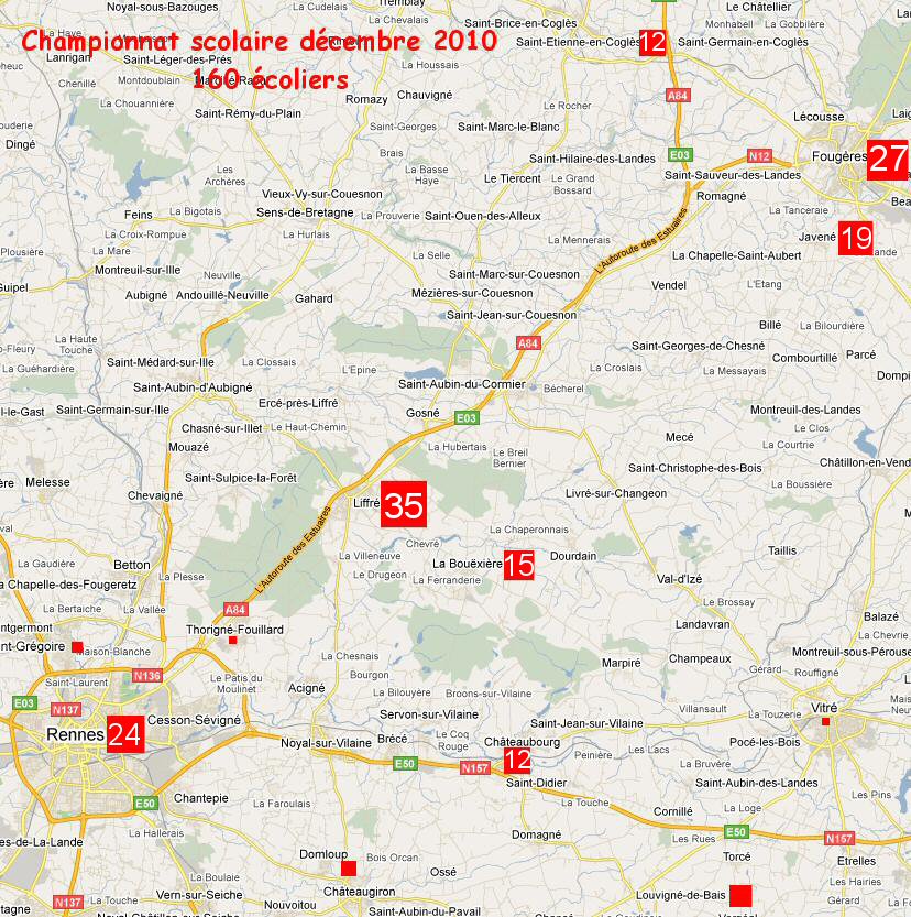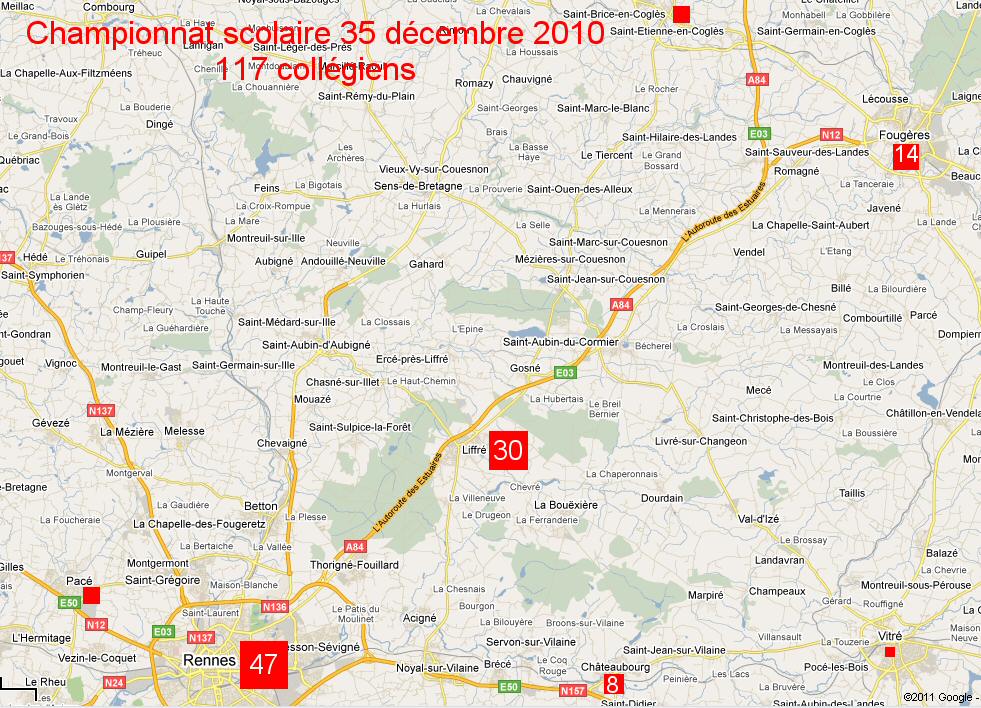 Répartition géographique des participants du championnat scolaire