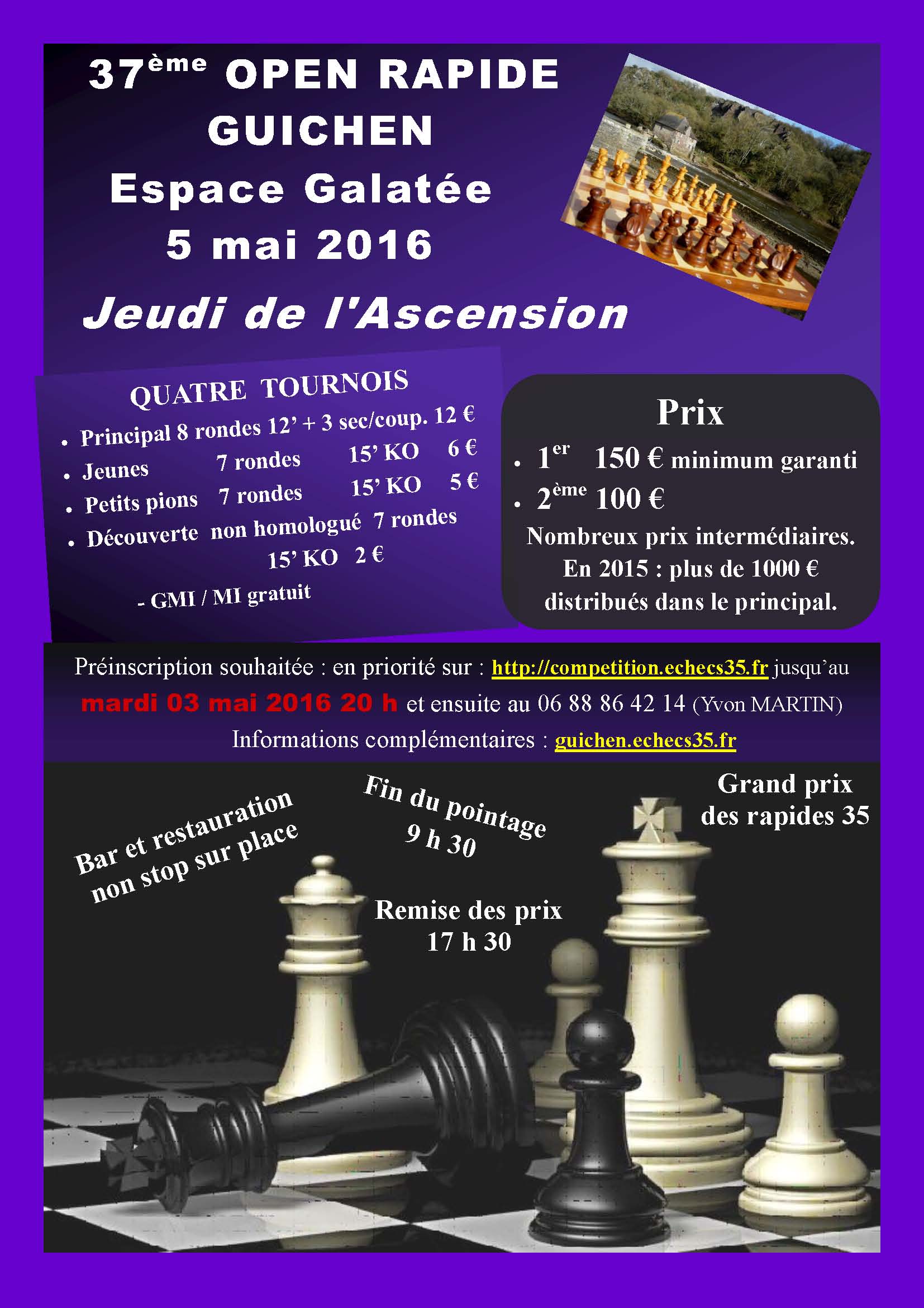 Au terme de la dernière ronde, Corentin SANVOISIN remporte le tournoi devant Hervé DODARD (champion d'Ille-et-Vilaine 2016), Michel YCHE et Stéphane DEROUIN. Hervé DODARD disputera le championnat de Bretagne, où il rencontrera les vainqueurs des championnats des trois autres départements bretons.